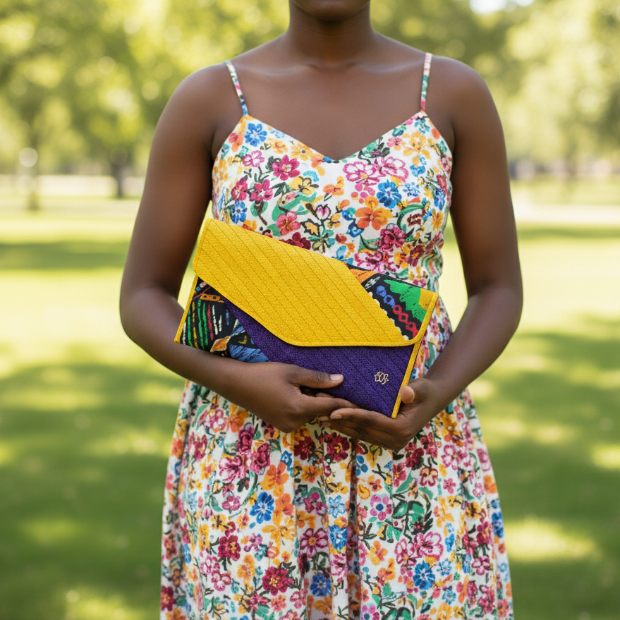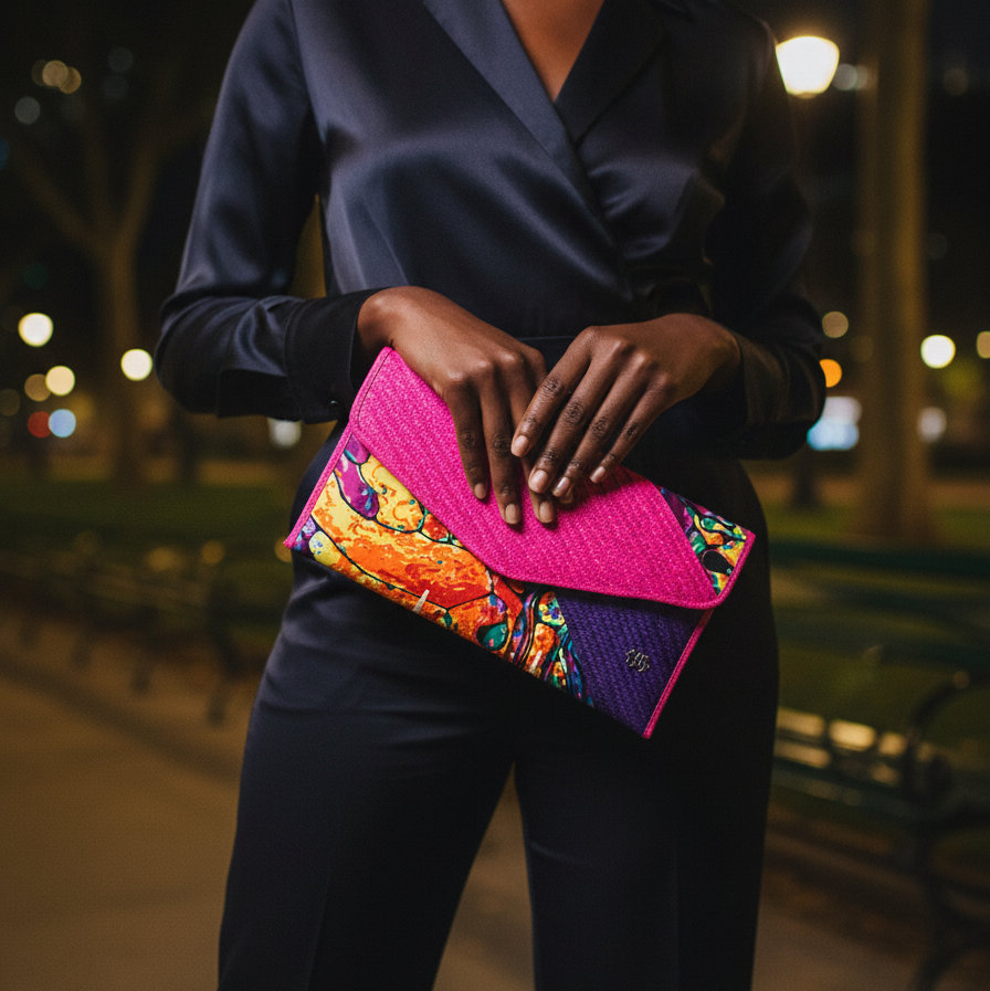 Elevate your style with our new Envelope Clutch, a fusion of caña flecha and vibrant African fabrics. This piece features a unique design that highlights the intricate braided patterns of cana flecha paired with the rich textile art of African fabrics. Perfect for special occasions or everyday elegance, this clutch blends tradition and modern style in one accessory.