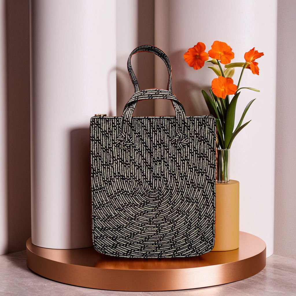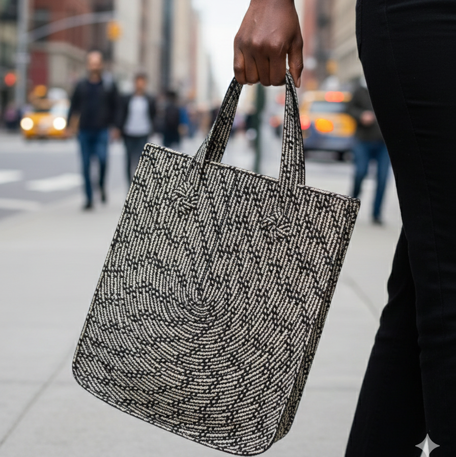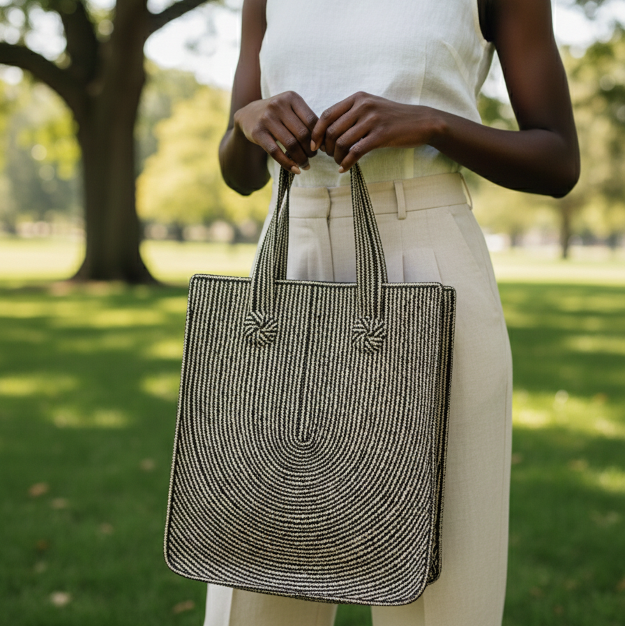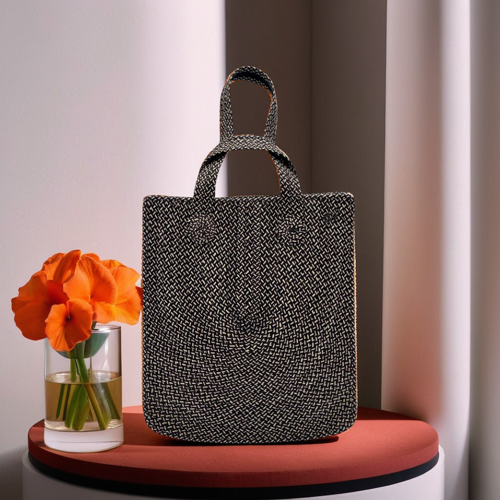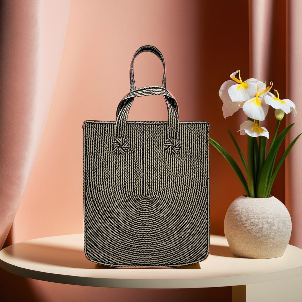 This handwoven caña flecha tote is a statement piece that blends tradition with modern design. Featuring a U-shaped pattern, this large bag is crafted with precision, showcasing intricate patterns and vibrant color combinations.  Designed for both style and function, this tote features asymmetrical handles of different lengths, adding a unique and intentional style element.