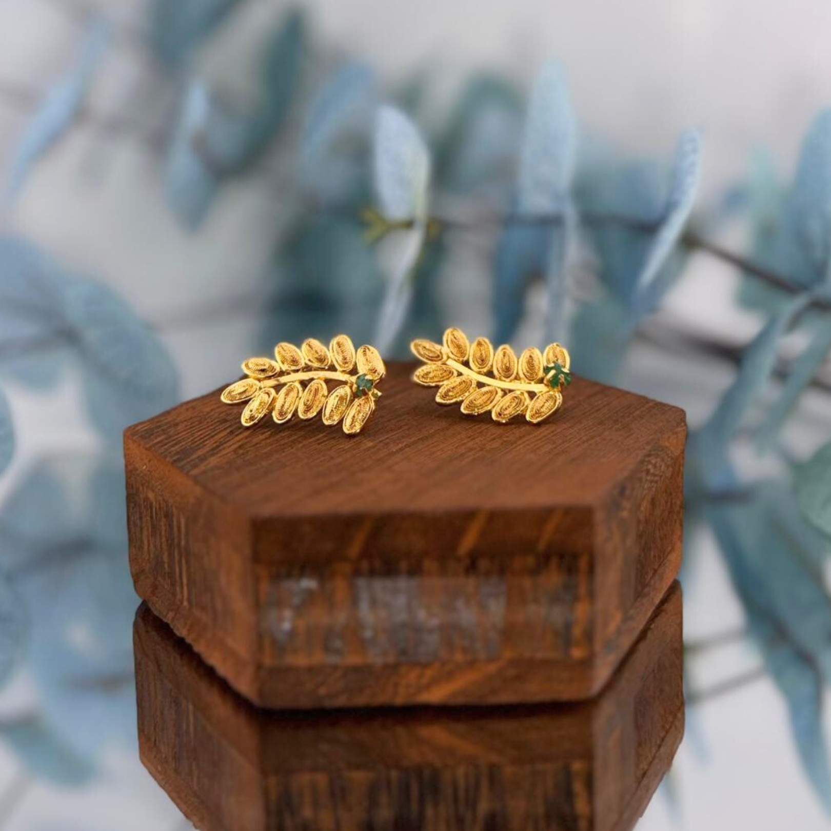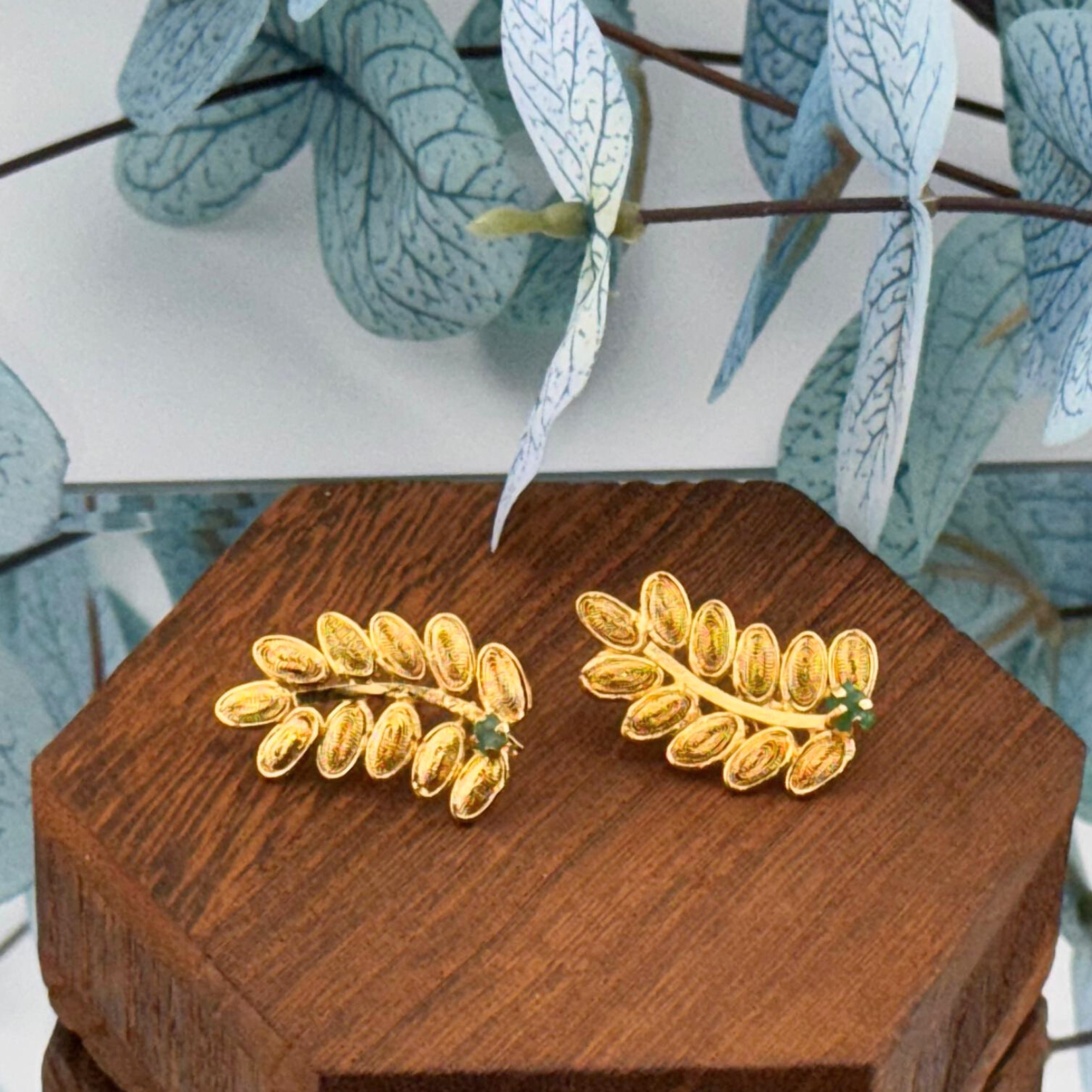 Leaf-shaped Raw Emerald Filigrana Earrings