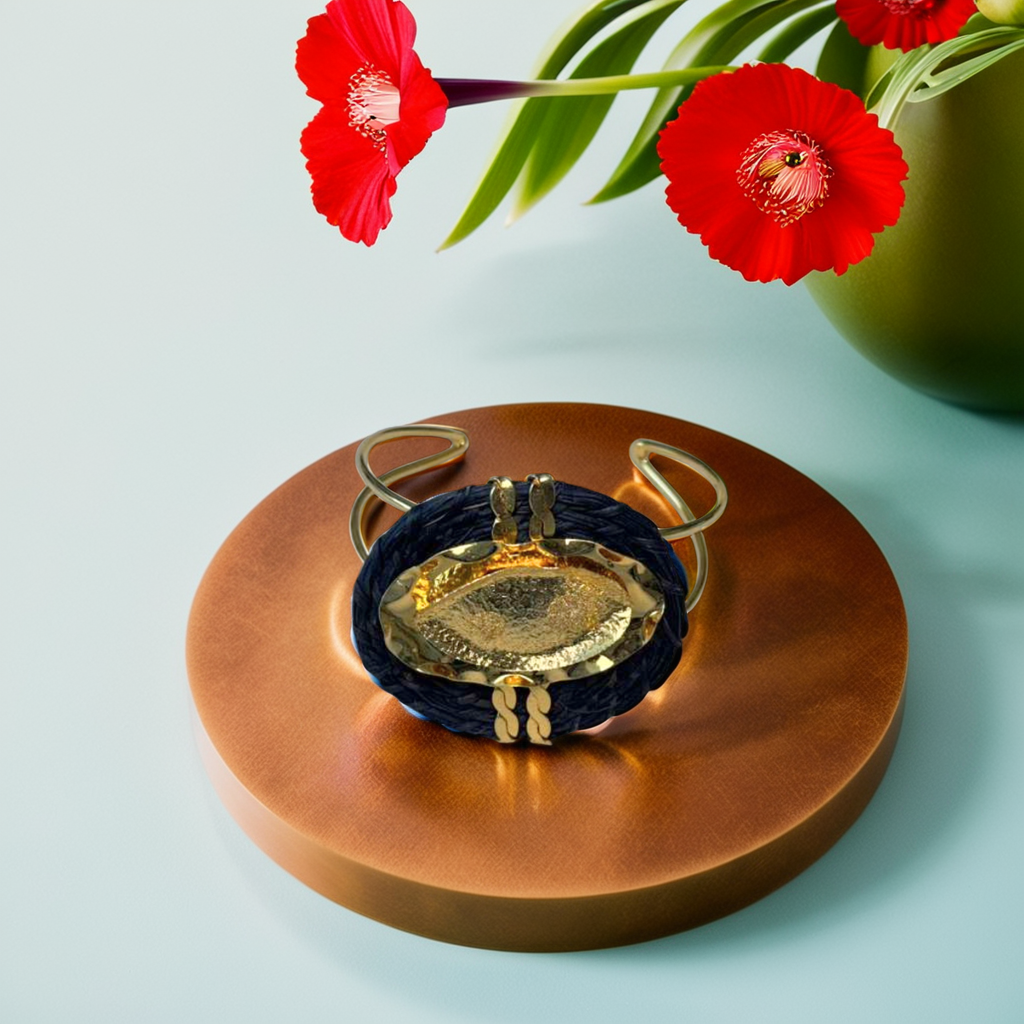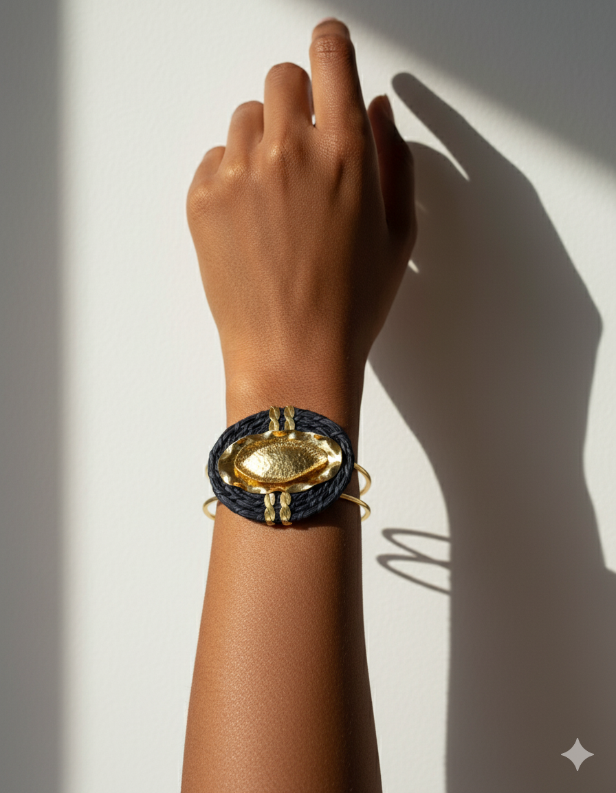 Handcrafted bracelet featuring palma iraca and bronze dipped in 24k gold. Using the traditional filigree technique, artisans weave intricate patterns that reflect generations of Colombian skill and creativity, creating a truly elegant and meaningful piece of wearable art.