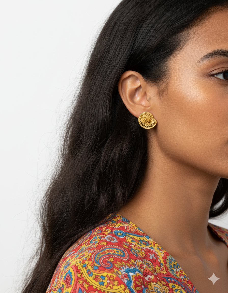 Handcrafted earrings featuring bronze dipped in 24k gold. Using the traditional filigree technique, artisans weave intricate patterns that reflect generations of Colombian skill and creativity, creating a truly elegant and meaningful piece of wearable art.